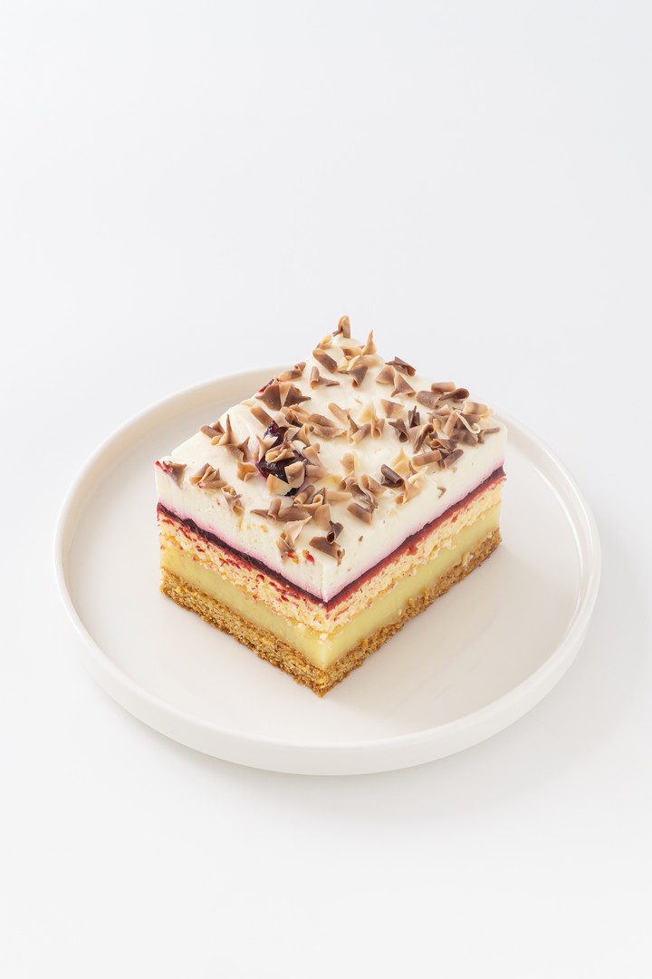 To wyjątkowe ciasto, które wprost rozpływa się w ustach. Kruche miodowe ciasto jest starannie przełożone kremową masą budyniową, delikatnym biszkoptem, a na wierzchu znajduje się nadzienie z czarnej porzeczki oraz lekka bita śmietana. Całość jest wykończona delikatnymi wiórkami czekoladowymi, tworząc niezapomniany smakowy eksperyment, gdzie słodycz miodu i kremowej masy spotyka się z wyrazistym smakiem porzeczek.